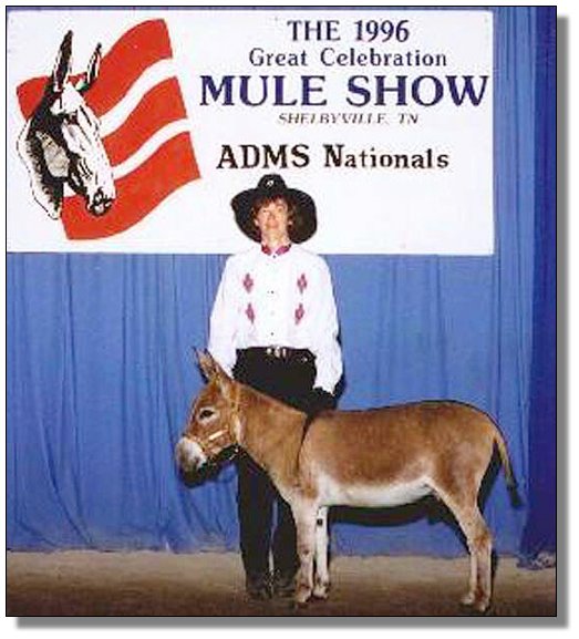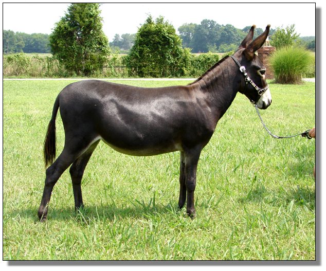 Carly is tiny and breathtakingly correct. You will not find a better conformed jennet. Her father is the good show jack, Windcrest Java. She carries the bloodlines of Zeus and Valintino 58. She has produced one excellent black jack foal, and will be bred back to the same jack, a son of multiple National Champion, Cash Dividend. This jennet is an investment in her own right.