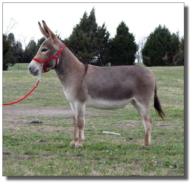 A great little jenny with lots of red color in her pedigree. Bloodlines back to the imports. She is super friendly and her first foal was a real looker with a sweet heart personality. We know how important it is to have personality in breeding jennies, and this girl will steal your heart. Flannaglo is ready for a long breeding career. Open and ready to breed with your best jack.