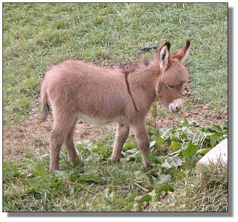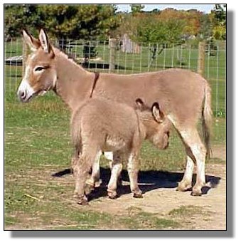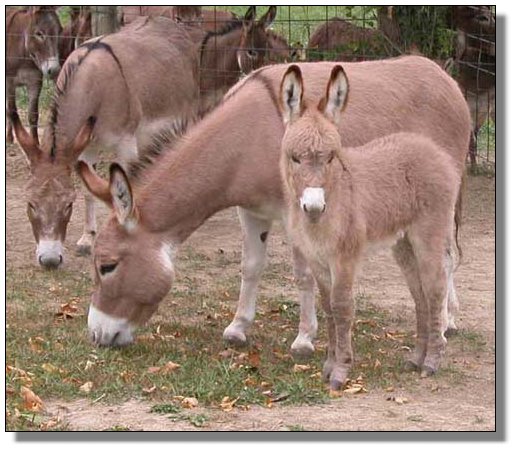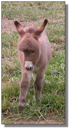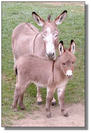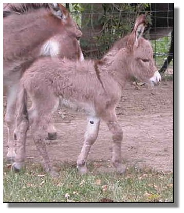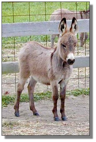 These miniature donkey foals are the result of thoughtful breeding of our quality, registered miniature donkey jacks and jennets. In order to produce miniature donkeys of the highest quality, each mating is carefully planned to strengthen the characteristics of the parents. If you have specific interest in a particular miniature donkey foal on the way or one on this page, please let us know. We invite you to visit our donkey brood jennet page where we list which jennet is bred to which jack and the approximate due date.
