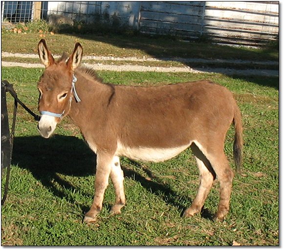 Brighty is stocky, straight, and a delightful little donkey.