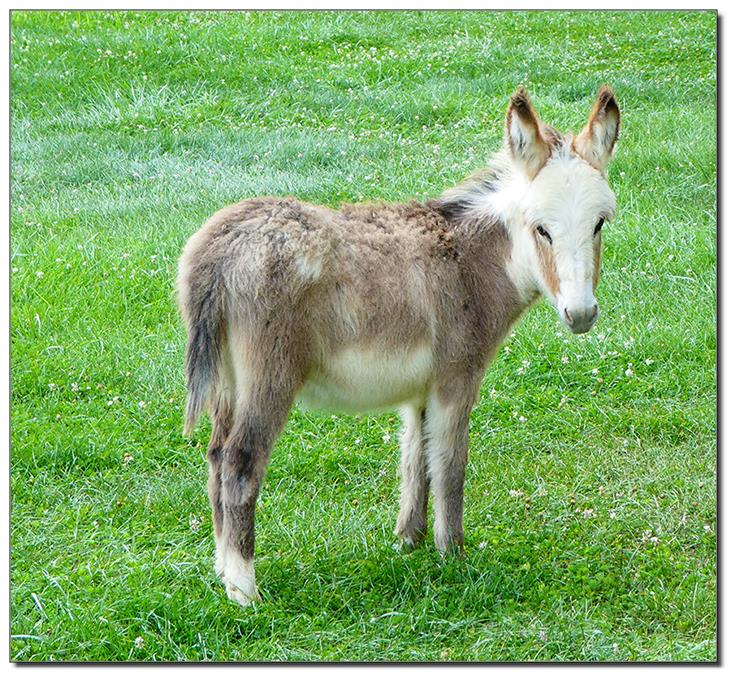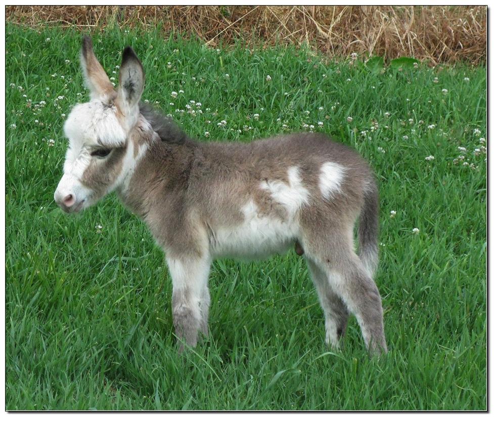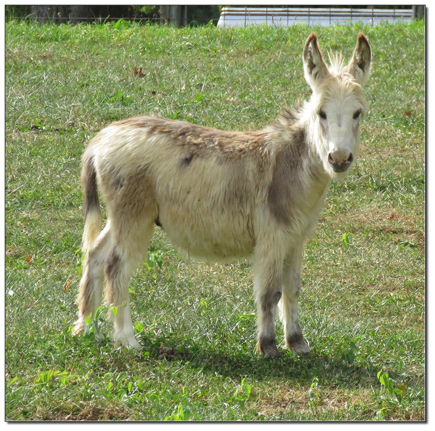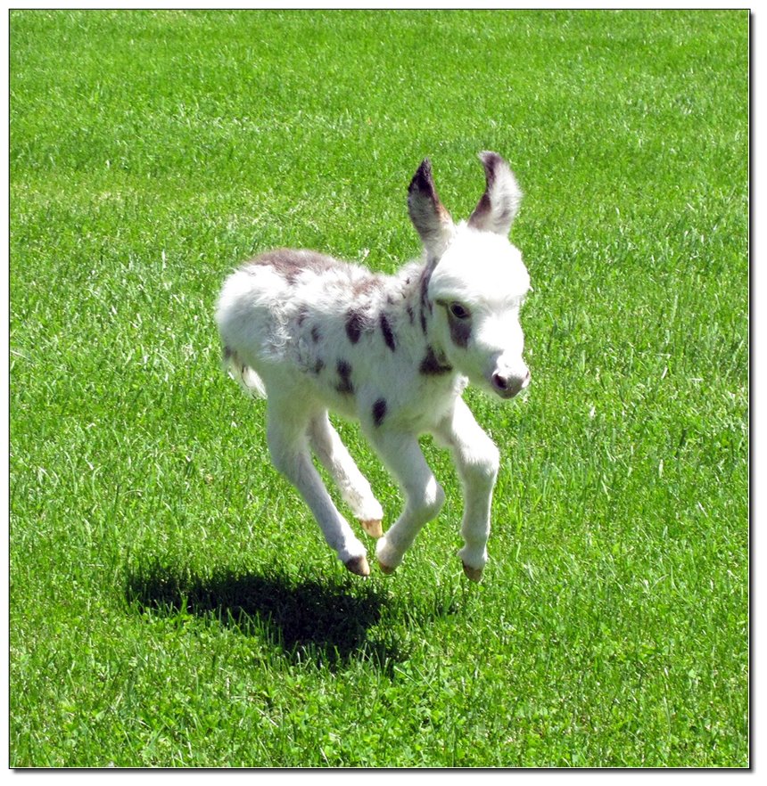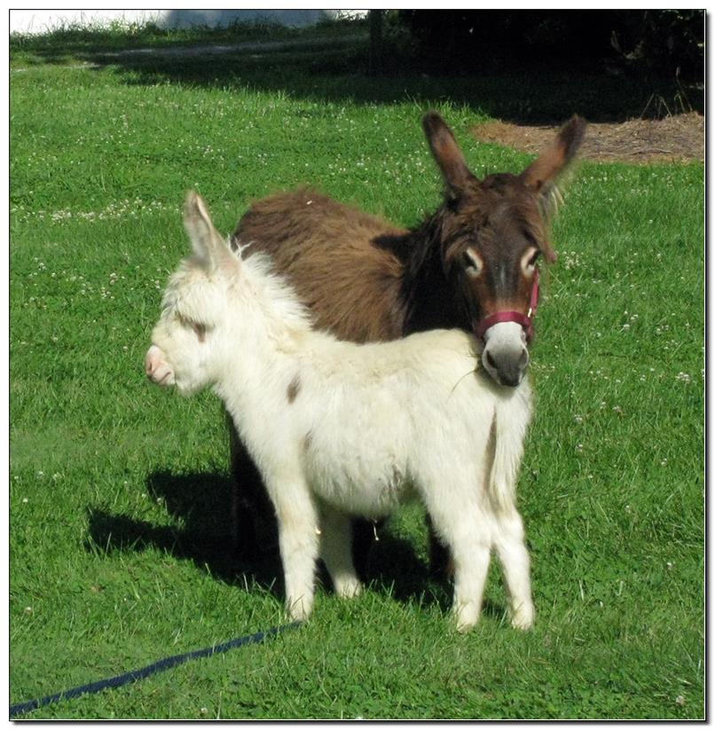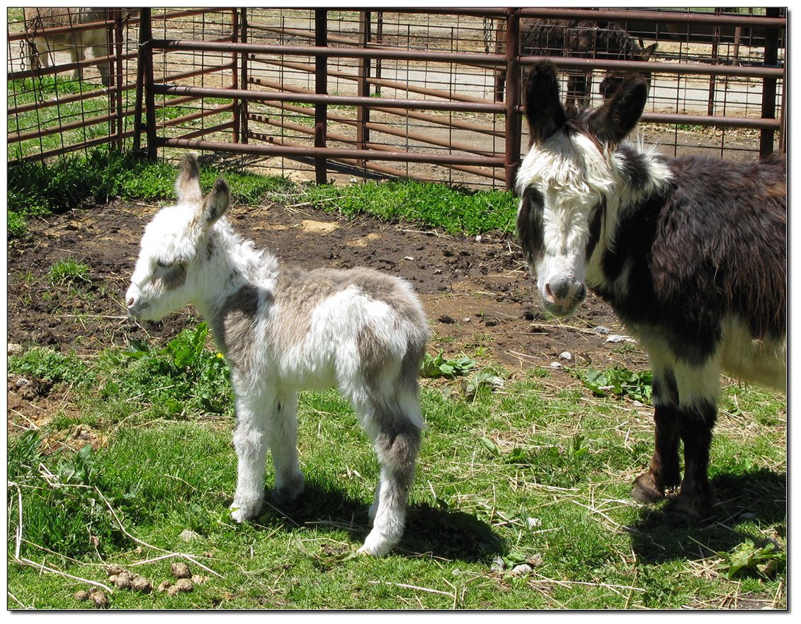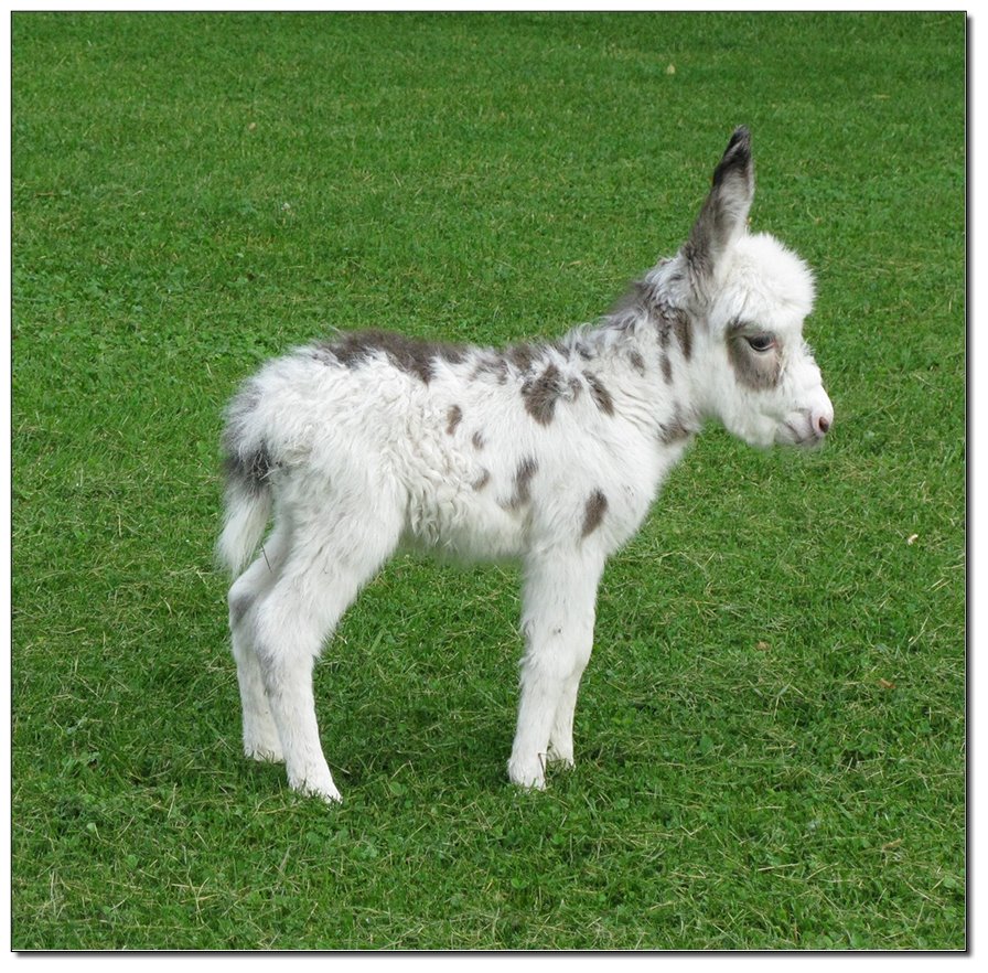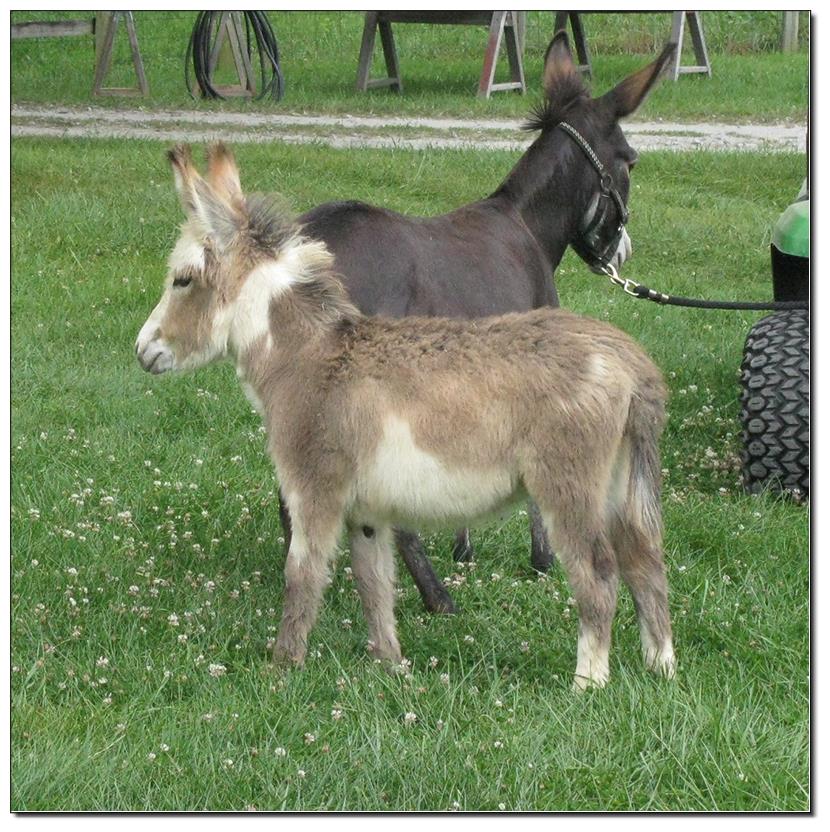 Valeris is a compact and well built jennet. Her dam is Venus Pon Farr, a Fireman daughter out of a Valintino 50 daughter. Pon Farr, a foundation jennet of excellence, has had foals that were red, brown, black, black and white spotted, and some were wooly. The sire, Tip Top, is a wonderful compact wooly jack combining the Little Red Hairy and the Harry Houdini blood lines. The Elms Valeris, at almost one year, measures 28 1/4”, and is black. She has a spunky personality, very willing to halter and lead, good for the farrier. She shows a longer than average foal coat in these pictures, but I expect her to shed out normally this year. She is not a wooly donkey. We think she would be a good show jennet, with that outgoing attitude, the upright head carriage, and what will probably be a naturally shiny black coat.